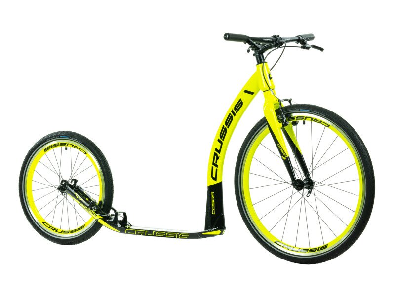 Absolutní novinka CRUSSIS pro rok 2024, hliníková koloběžka s hmotností 7,635 kg a cenou pod deset tisíc korun. To je CRUSSIS COBRA – nejlehčí koloběžka s poměrem kol 26×20“ na trhu. Koloběžka jako stvořená (nejen) pro výlety všeho druhu. Nosnost 120 kg a pro postavu 140-190 cm. Určení : silnice **** / terén *** / město ***.