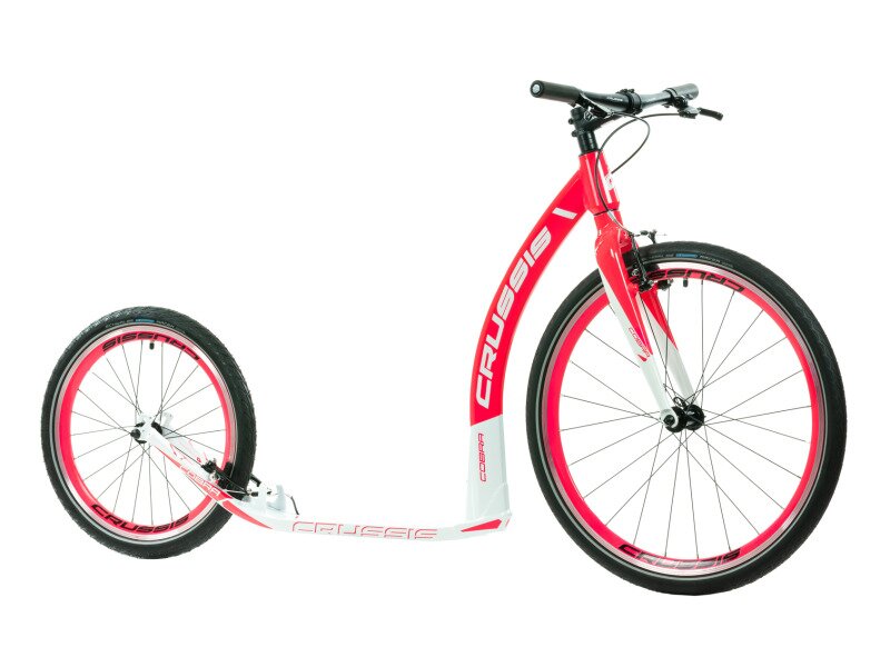 Nový hliníkový rám koloběžky Cobra se specifickou a inovativní konstrukcí byl vyvinut s nejvyšším důrazem na funkčnost koloběžky. Kónický tvar hlavové trubky spolu s optimálně tvarovaným trojúhelníkovým profilem krku zvyšuje pevnost rámu. Pláště jsou vhodné na silnici i do lehkého terénu, na polní nebo lesní cesty.