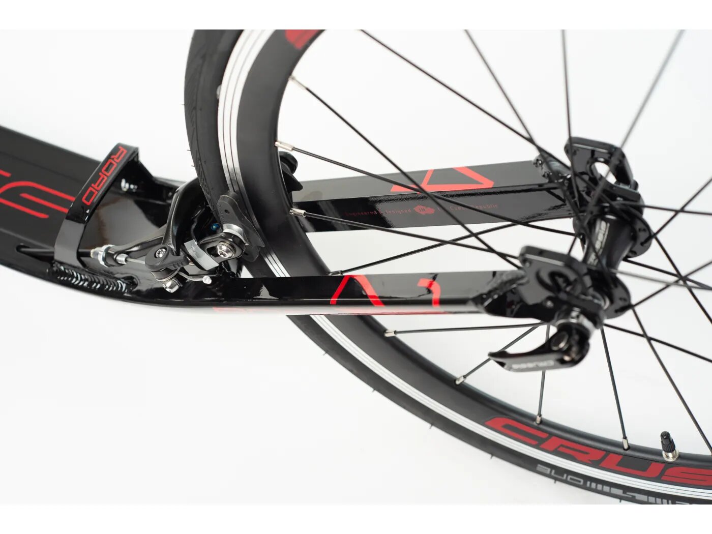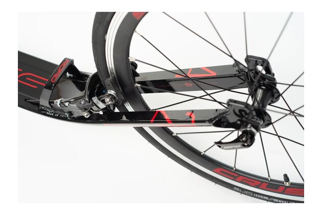 Unikátně řešené stupátko tvoří jeden celek se zadní vidlicí; vše je vyrobeno z jednoho kusu ohýbaného profilu. Není to jen svébytný designový prvek, ale především konstrukční řešení eliminující u koloběžek typické únavové lomy v místech obvyklého navaření zadní vidlice ke stupátku.