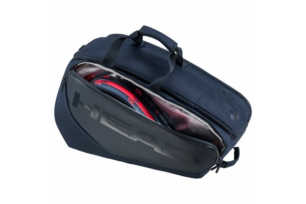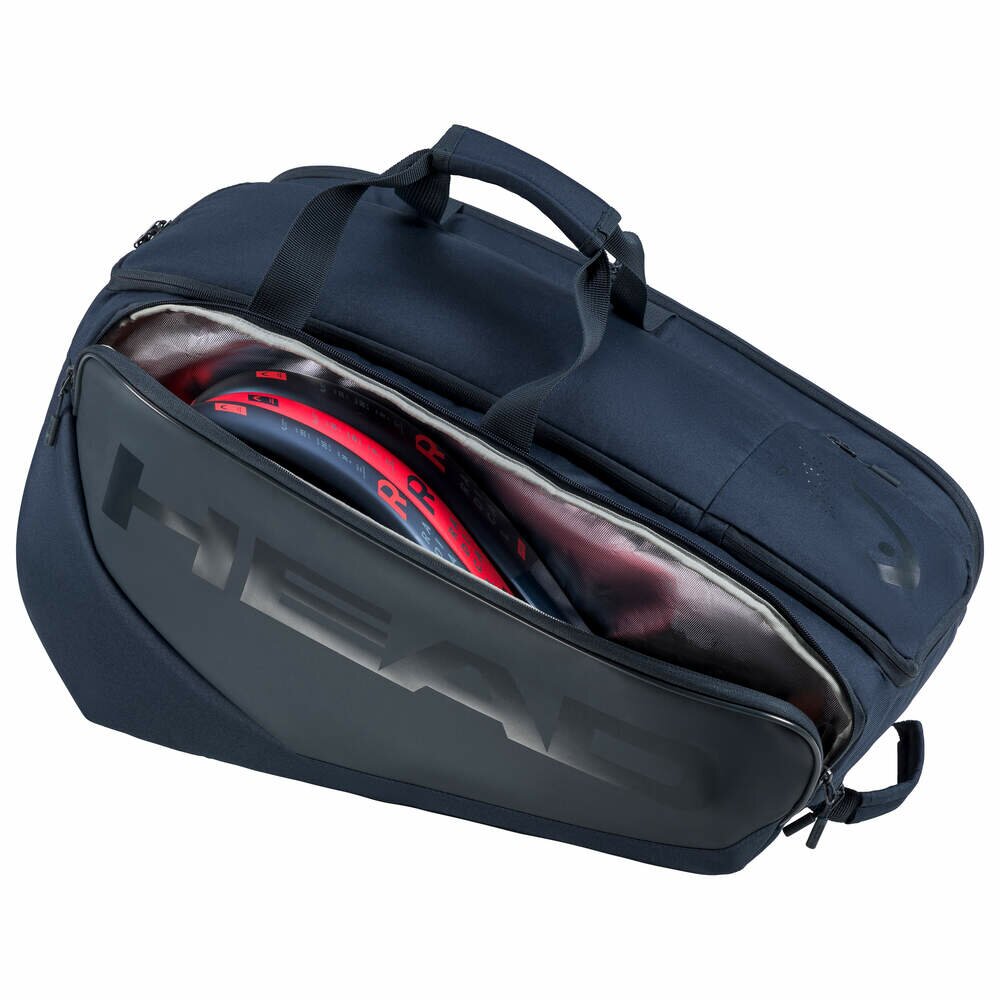 U vylepšené tašky PRO PADEL BAG L se snoubí styl s prostorem a funkčností. Taška nabízí kromě nového, elegantnějšího tvaru a nové kapsy na příslušenství také svěží tmavě modrý design, který se skvěle hodí k nové padelové raketě RADICAL nebo k jakékoli jiné padelové raketě HEAD. Taška má dvě vnější přihrádky na rakety, z nichž jedna je vybavena technologií CCT+, která rakety chrání před extrémními teplotami. Kromě hlavní přihrádky a prostoru na boty má taška PRO PADEL BAG L dvě vnější kapsy na příslušenství se zapínáním na zip a vnitřní síťovanou kapsu na příslušenství se zapínáním na zip. Díky systému nošení jako batoh můžete svou výstroj pohodlně nosit na každý zápas. Společnost HEAD se snaží omezit používání plastů. Jako důkaz tohoto závazku je visačka vyrobena z recyklovaného papíru a připevněna konopným provázkem a taška je dodávána v novém recyklovaném plastovém obalu.