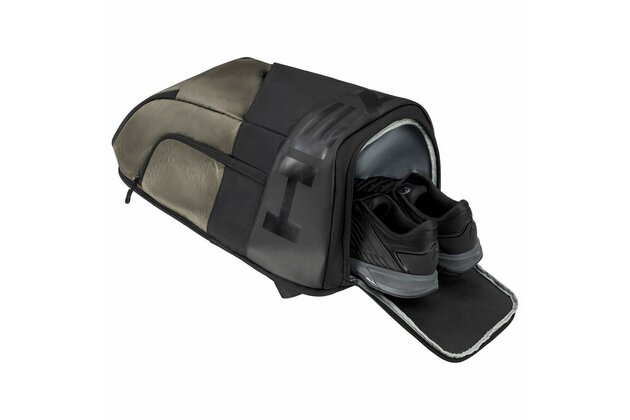 Rozviňte svůj potenciál díky prostorné hlavní přihrádce, do které se snadno vejdou všechny potřebné věci na trénink. Kromě toho je taška vybavena speciální polstrovanou přihrádkou na rakety, která umožňuje bezpečné uložení až dvou raket. Vyzkoušejte dokonalou kombinaci stylu a praktičnosti. Její promyšleně zkonstruovaná přední kapsa na zip a dvě boční kapsy na zip nabízejí rychlý a snadný přístup k vašim věcem na cestách. Integrovaná přihrádka na boty udržuje boty odděleně a přehledně.