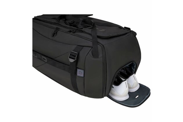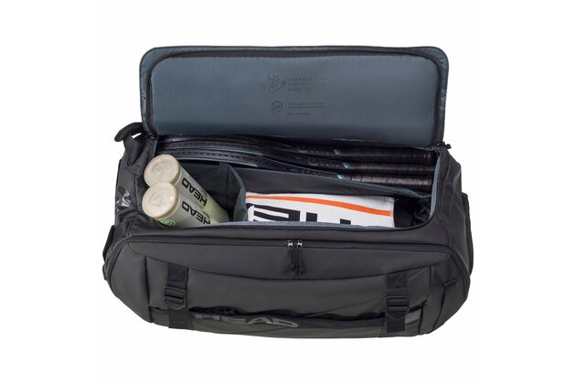 Tato vysoce funkční taška pojme až 12 raket a technologie CCT+ je ochrání před vysokými teplotami. Navíc je tu oddělená přihrádka na boty s odvětráváním a další vnitřní a vnější kapsy na příslušenství. PRO X DUFFLE BAG je důkazem, že značka HEAD si uvědomuje odpovědnost za větší udržitelnost a pomáhá chránit planetu. Cedulka je navíc vyrobena z recyklovaného papíru a připevněna provázkem z konopí.