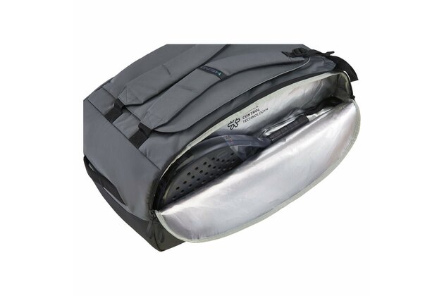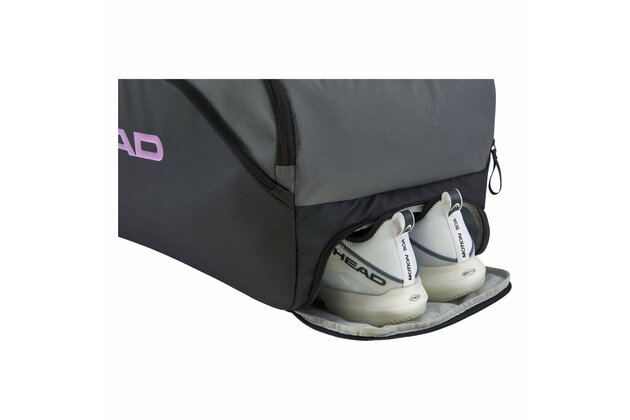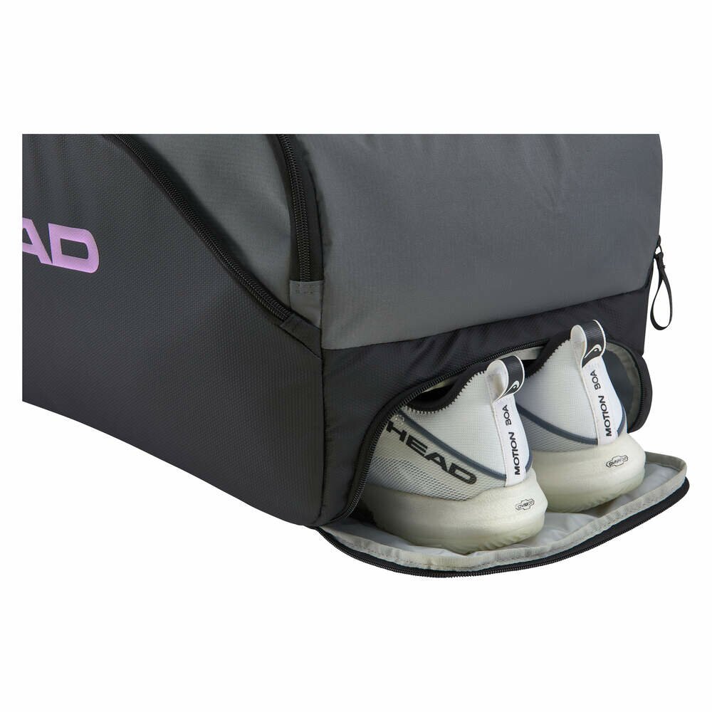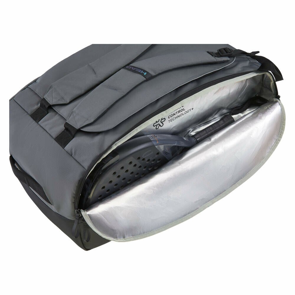 Taška na rakety PRO X PADEL DUFFLE BAG L je vyrobena z tkanin obsahujících recyklované PET lahve a představuje novou tašku v řadě, která nabízí styl, moderní funkčnost a udržitelnější výběr. Tato taška, inspirovaná taškami na rakety Sport a Duffle v naší nabídce tenisu, má moderní a prémiový design a přihrádku na rakety s technologií kontroly teploty CCT+, která vaše rakety chrání před extrémními teplotami. V tašce, která má kapsy na příslušenství, odepínací tašku na zpocené oblečení a velké vnější přihrádky na obou stranách, je snadné uspořádat výbavu, boty a další věci. K dispozici je také přihrádka na boty, která je umístěna, takže můžete snadno uchopit rukojeť rakety. Jako ilustrace toho, jak se HEAD snaží snížit spotřebu plastů, je visačka vyrobena z recyklovaného papíru a svázaná konopnou šňůrou.