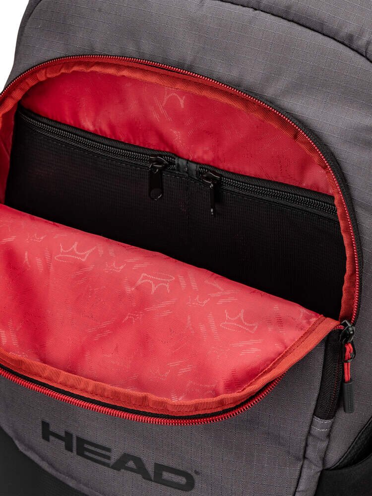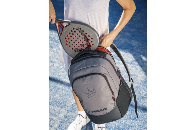 K dispozici je několik hlavních přihrádek, které vám pomohou zorganizovat vaše věci a pojme dvě rakety. Díky širokému otvoru máte velmi snadný přístup do hlavní komory i do dalších menších kapes na příslušenství, nechybí ani integrovaná přihrádka na boty a nastavitelná kapsa na láhev. BATOH COELLO PRO X PADEL BACKPACK je ukázkou toho, jak si HEAD uvědomuje svou odpovědnost být udržitelnější a pomáhat chránit planetu, s visačkou vyrobenou z recyklovaného papíru a převázanou konopnou šňůrou.