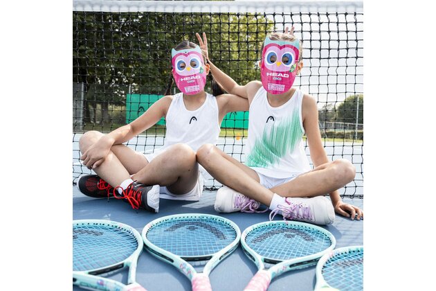 25palcová Tenisová raketa COCO 25" s barevným a zářivým designem je ideální pro dívky ve věku 8 až 10 let, které s tenisem začínají.