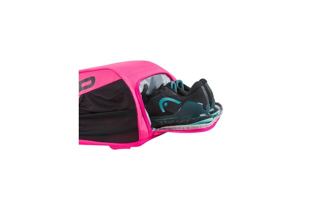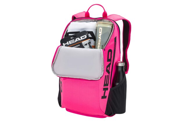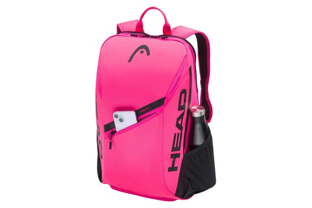 Buďte odvážní na kurtu i mimo něj s batohem TOUR BACKPACK 25L PK, který má zářivý růžový design a je vyroben z nové a prémiové tkaniny. Díky vylepšené funkčnosti je nyní telefon rychlejší a snáze přístupný v externí kapse telefonu. Až dvě rakety můžete přenášet v batohu, který má dvě hlavní přihrádky, dvě vnější kapsy na láhve s vodou nebo na dózy s míčky a přihrádka na obuv znamená, že můžete mít obuv oddělenou od ostatních nezbytností. Společnost HEAD se snaží omezit používání plastů. Jako důkaz tohoto závazku je visačka vyrobena z recyklovaného papíru a připevněna konopným provázkem a taška je dodávána v recyklovaném plastovém obalu.