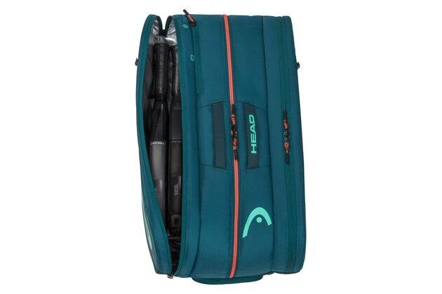 Do tří hlavních přihrádek můžete přenášet až 7 raket, z nichž jedna je vybavena technologií kontroly teploty CCT+, která chrání vaše rakety před extrémními teplotami. S taškou, která má také vnitřní kapsu na zip na příslušenství a integrovanou přihrádku na boty, je snadné chránit své věci a popruhy batohu vám umožní pohodlné nošení. Společnost HEAD se snaží omezit používání plastů. Jako důkaz tohoto závazku je visačka vyrobena z recyklovaného papíru a připevněna konopným provázkem a taška je dodávána v recyklovaném plastovém obalu.